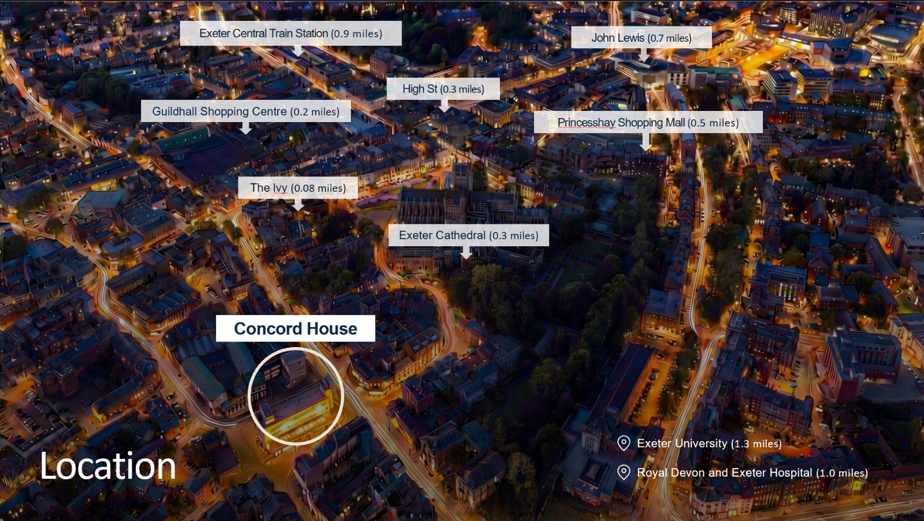 The location is a standout attribute. The property sits within easy walking distance of Exeter’s principal retail, leisure and employment hubs, including Guildhall Shopping Centre (approx. 0.2 miles), Exeter Cathedral (0.3 miles) and Princesshay Shopping Centre (0.5 miles). Exeter Central Station (approx. 0.9 miles) provides regional and national connectivity, while Exeter University (1.3 miles) and the Royal Devon & Exeter Hospital (1.0 mile) further underpin consistent occupational demand fundamentals.